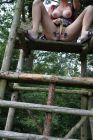 Ich steige langsam den Hochsitz hinauf